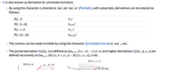 or \[PartialD], with subscripts, derivatives can be entered as follows: -
