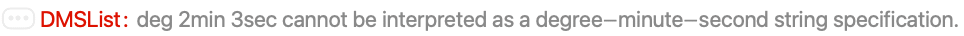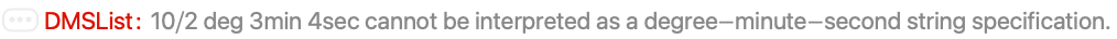 - DMSList["dms"] supports all common DMS string formats, with delimiters such as °, ', ", and d, m, s.