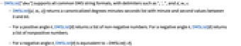 - For a positive angle θ, DMSList[θ] returns a list of non-negative numbers. For a negative angle θ, DMSList[θ] returns a list of nonpositive numbers.