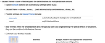 - DatasetTheme{theme1,theme2,…} will automatically combine theme1, theme2, etc.