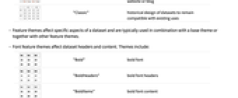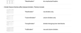 "FullDividers" row and column dividers - Background feature themes affect dataset backgrounds. Themes include: