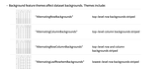 "AlternatingAllRowBackgrounds" row backgrounds striped at all levels - Layout feature themes affect how datasets elements are arranged. Themes include: