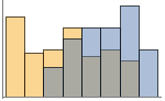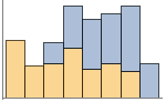 AspectRatio 1/GoldenRatio overall ratio of height to width Axes True whether to draw axes BarOrigin Bottom origin of histogram bars ChartBaseStyle Automatic overall style for bars ChartElementFunction Automatic how to generate raw graphics for bars ChartElements Automatic graphics to use in each of the bars ChartLabels None category labels for datasets ChartLayout Automatic overall layout to use ChartLegends None legends for data elements and datasets ChartStyle Automatic style for bars ColorFunction Automatic how to color bars ColorFunctionScaling True whether to normalize arguments to ColorFunction DateFunction Automatic how to convert dates to standard form DateReduction None what cyclic period of time to use DateTicksFormat Automatic format for date tick labels LabelingFunction Automatic how to label elements LegendAppearance Automatic overall appearance of legends PerformanceGoal $PerformanceGoal aspects of performance to try to optimize PlotTheme $PlotTheme overall theme for the histogram TimeZone Automatic time zone to use - The following settings for ChartLayout can be used to display multiple sets of data: