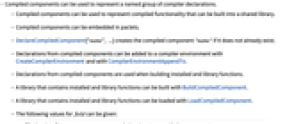 - Declarations from compiled components can be added to a compiler environment with CreateCompilerEnvironment and with CompilerEnvironmentAppendTo.
