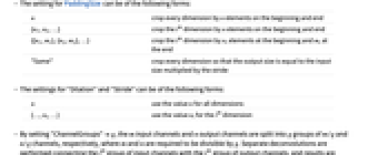 dimension by ni elements at the beginning and mi at the end"Same" crop every dimension so that the output size is equal to the input size multiplied by the stride - The settings for "Dilation" and "Stride" can be of the following forms: