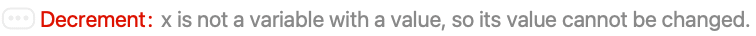 Wolfram Language. (1988). Decrement. Wolfram Language & System Documentation Center. Retrieved from https://reference.wolfram.com/language/ref/Decrement.html