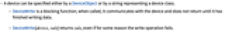 - DeviceWrite is a blocking function; when called, it communicates with the device and does not return until it has finished writing data.