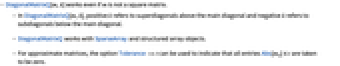 - DiagonalMatrixQ[m,k] works even if m is not a square matrix.
