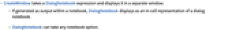- CreateWindow takes a DialogNotebook expression and displays it in a separate window.