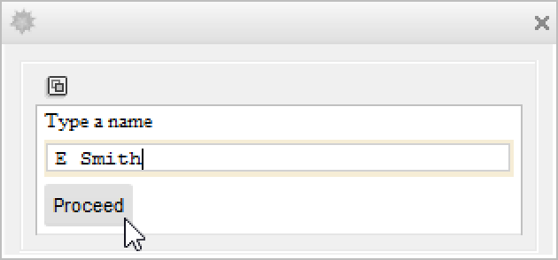 After the Proceed button is clicked, the effect of DialogReturn[res=name] can be seen: