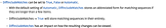 - With the default setting of Automatic, DiffIncludeMatches stores an abbreviated form for matching sequences if they are longer than a few items.