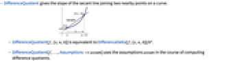 - DifferenceQuotient gives the slope of the secant line joining two nearby points on a curve.