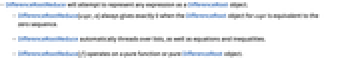 - DifferenceRootReduce automatically threads over lists, as well as equations and inequalities.