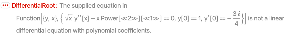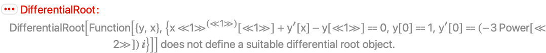 - DifferentialRoot[lde,pred] represents a solution restricted to avoid cuts in the complex