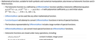 - FunctionExpand will attempt to convert DifferentialRoot functions in terms of special functions.