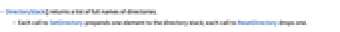 - Each call to SetDirectory prepends one element to the directory stack; each call to ResetDirectory drops one.