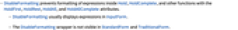 - DisableFormatting prevents formatting of expressions inside Hold, HoldComplete, and other functions with the HoldFirst, HoldRest, HoldAll, and HoldAllComplete attributes.
