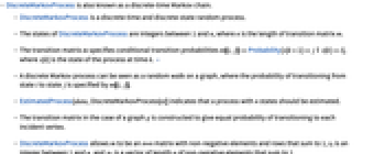 - DiscreteMarkovProcess is a discrete-time and discrete-state random process.