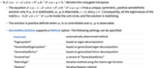 is observable. - DiscreteRiccatiSolve supports a Method option. The following settings can be specified: