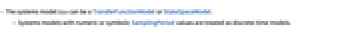 - Systems models with numeric or symbolic SamplingPeriod values are treated as discrete-time models.