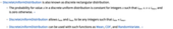 - DiscreteUniformDistribution is also known as discrete rectangular distribution.
