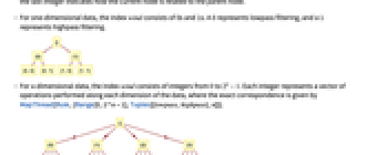 integers indicate the parent node and the last integer indicates how the current node is related to the parent node. - For one-dimensional data, the index wind consists of 0s and 1s. A 0 represents lowpass filtering, and a 1 represents highpass filtering.