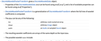 - DiscreteWaveletPacketTransform gives a DiscreteWaveletData object.