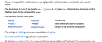 Method Automatic method to use Padding "Periodic" how to extend data beyond boundaries WorkingPrecision MachinePrecision precision to use in internal computations - The settings for Padding are the same as available in ArrayPad.