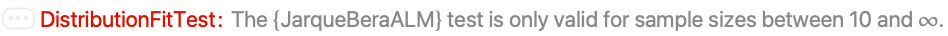 The Jarque–Bera ALM test must have sample sizes of at least 10 for valid