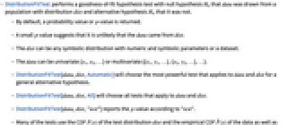 - DistributionFitTest performs a goodness-of-fit hypothesis test with null hypothesis