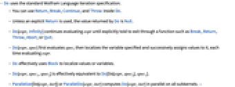 - Do[expr,Infinity] continues evaluating expr until explicitly told to exit through a function such as Break, Return, Throw, Abort, or Quit.