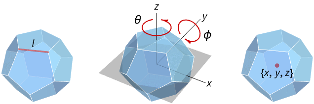 represents a dodecahedron rotated by an angle θ with respect to the z axis and angle ϕ with respect to the y axis.