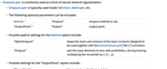 - Information[DropoutLayer[…]] gives a report about the layer.