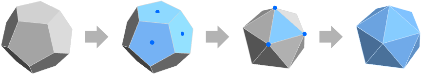 - A typical choice for the vertex points of the dual polyhedron is to use the centroid from each face of poly.