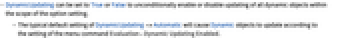 - DynamicUpdating can be set to True or False to unconditionally enable or disable updating of all dynamic objects within the scope of the option setting.