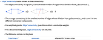 - For a disconnected graph, EdgeConnectivity will return 0.
