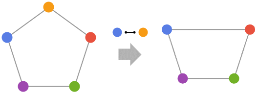 - EdgeContract[g,e] creates a new graph from g by deleting the edge e and merging vertices of e.
