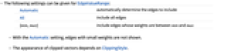Automatic automatically determine the edges to include All include all edges {min,max} include edges whose weights are between min and max - With the Automatic setting, edges with small weights are not shown.