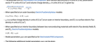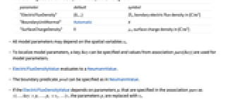 - ElectricFluxDensityValue specifies a boundary condition for ElectrostaticPDEComponent and is used as part of the modeling equation: