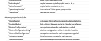 "SpaceGroupNumber" International Tables space group number "SpaceGroup" space group symbol - Atomic properties include: