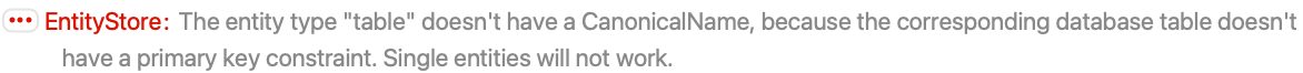 When this happens, EntityStore will emit a message. This means that some functionality involving single entities will be disabled: