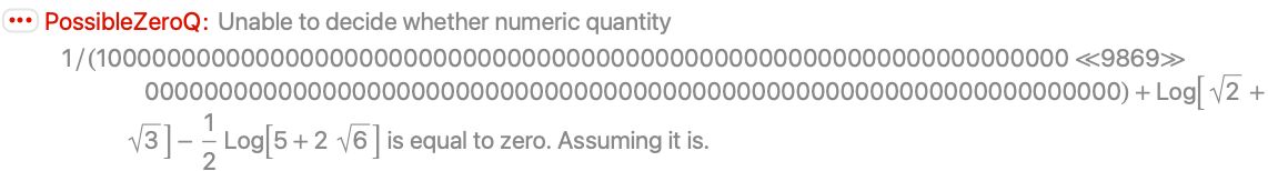 Numeric methods used by PossibleZeroQ may incorrectly decide that a number is zero: