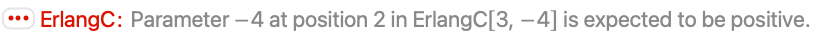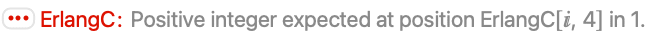 - ErlangC[c,a] for positive inputs is equivalent to Probability[n>=c,nStationaryDistribution[QueueingProcess[λ,μ,c]]], with a=λ/μ.
