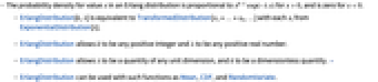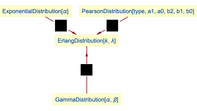 . - ErlangDistribution[k,λ] is equivalent to TransformedDistribution[x1+…+xk,…] with each xi from ExponentialDistribution[λ].