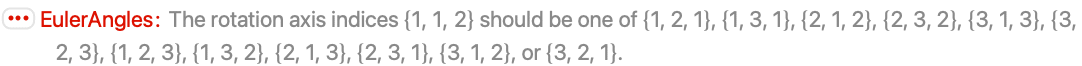 - EulerAngles[r] is equivalent to EulerAngles[r,{3,2,3}], the z-y-z rotations.