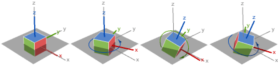 The right-handed, z-up coordinate system is standard for Cartesian coordinates in mathematics. However, in computer graphics applications, different systems, such as right-handed, y-up may be used. Using the previous example, find the Euler angles that transform a z-up to a y-up coordinate system: