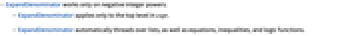 - ExpandDenominator automatically threads over lists, as well as equations, inequalities, and logic functions.