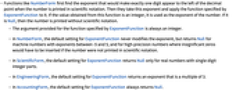 - In ScientificForm, the default setting for ExponentFunction returns Null only for real numbers with single-digit integer parts.