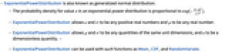 - ExponentialPowerDistribution can be used with such functions as Mean, CDF, and RandomVariate.