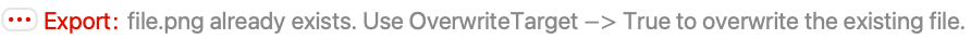 False do not overwrite an existing file True overwrite an existing file (default) "KeepBoth" keep the existing file, automatically choosing a name for the new file - Use Export[dest,…,options] to provide format-specific options that control the behavior of the export.